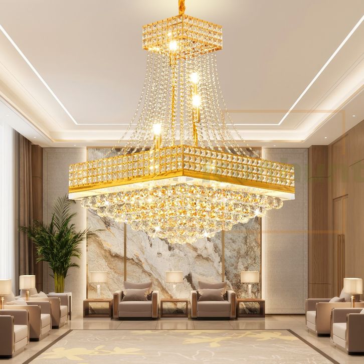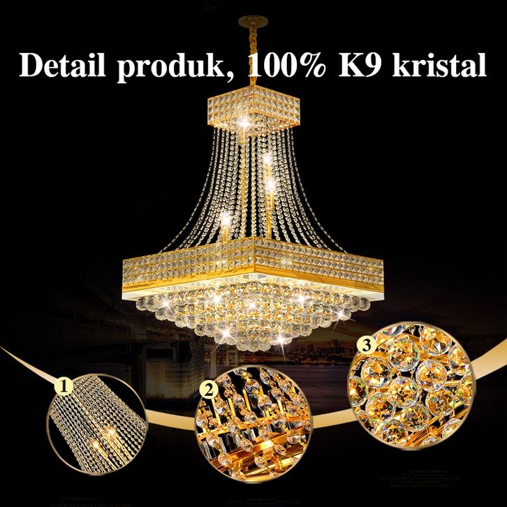 ⭐⭐Lampu Gantung Kristal 60cm Mewah Double-Layer 3 Warna Chandelier Lampu Hias E14 R Tamu