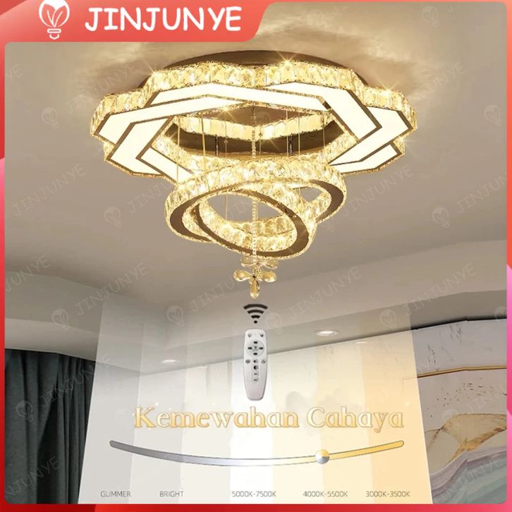 Lampu Gantung Kristal R Tamu Kemewahan Cahaya Dekorasi REMOTE KONTROL 3 Warna LED kristal Ceiling