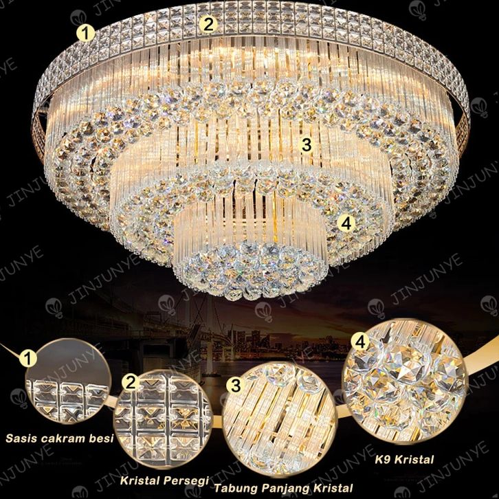 Lampu Gantung Kristal Mewah Modern Besar R Tamu 3 Warna Lampu Kristal