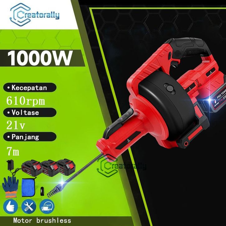 CREATORALLY Mesin pembersih pipa baterai 21V alat pembersih saluran pipa mampet