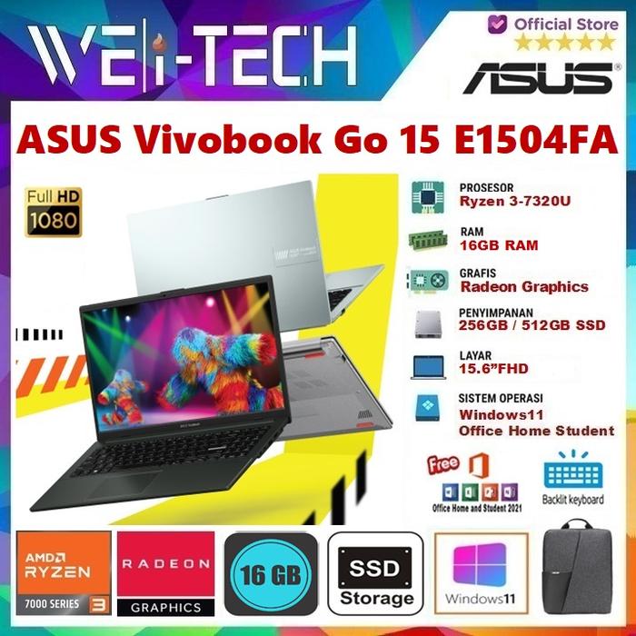 ASUS VIVOBOOK GO 15 E1504FA RYZEN 3-7320U 16GB 512GB 15.6"FHD WIN11 OHS - BLACK 16GB+IPS, TANPA ANTIGORES