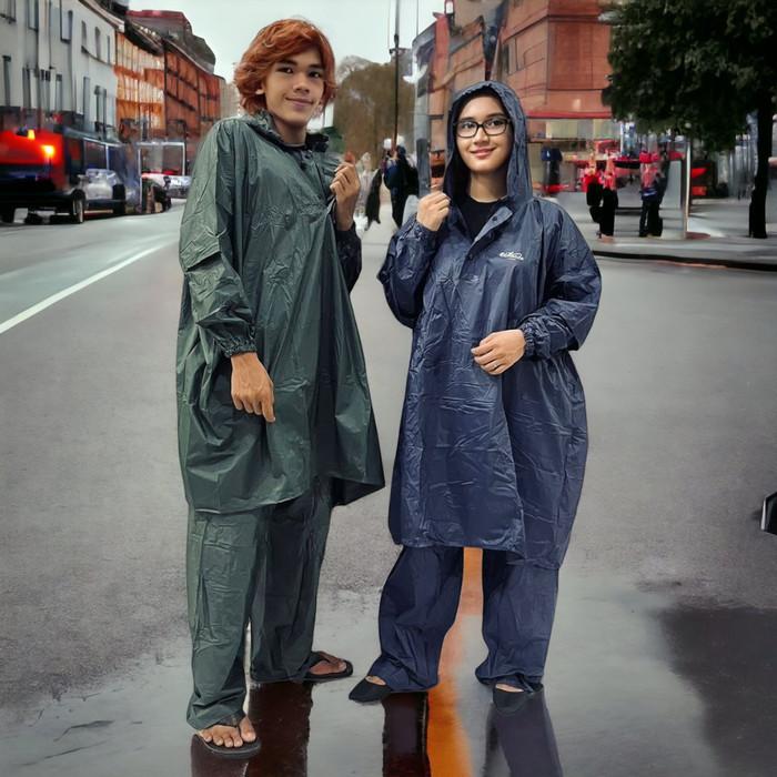 MANTEL MANTOL JAS HUJAN PONCO PONCHO SETELAN CELANA LENGAN PANJANG DEWASA PRIA WANITA ANTI REMBES JUMBO ELMONDO - PRIMA-RANDOM