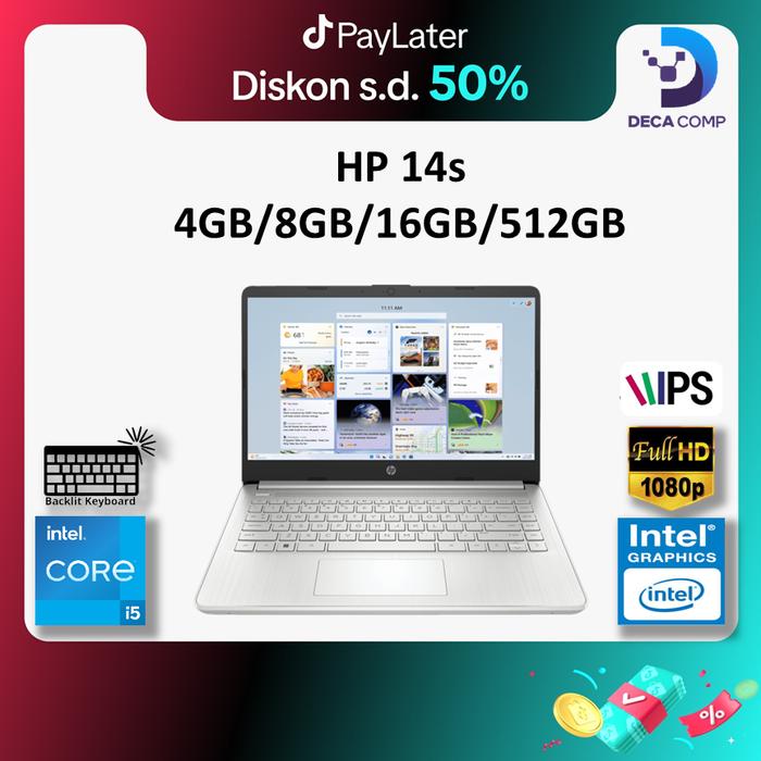 HP 14 I7-1255U/I5-1235U/I3-1215U 8GB/16GB 512SSD W11+OHS 14.0FHD IPS ORIGINAL RESMI - NON BUNDLING, I5 8GB 512GB
