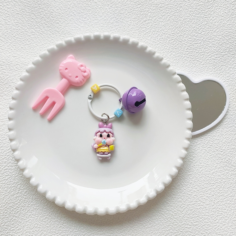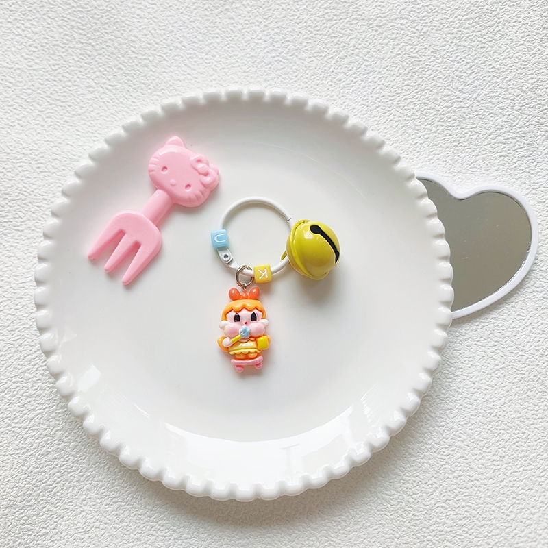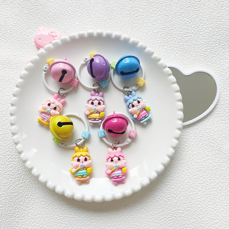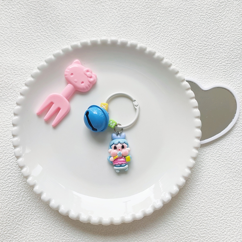 Gantungan Kunci 3D Karakter Kartun Gadis Kecil Meniup Gelembung Gantungan Tas Lucu dengan Kostum yang Bisa Diganti