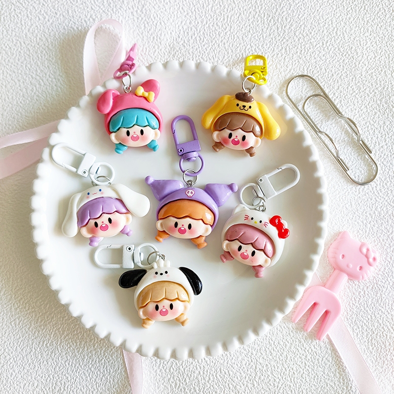 Gantungan Kunci Tas Kartun Resin Sanrio - Karakter Gadis Kecil Hadiah Lucu untuk Sahabat Aksesoris Pelajar