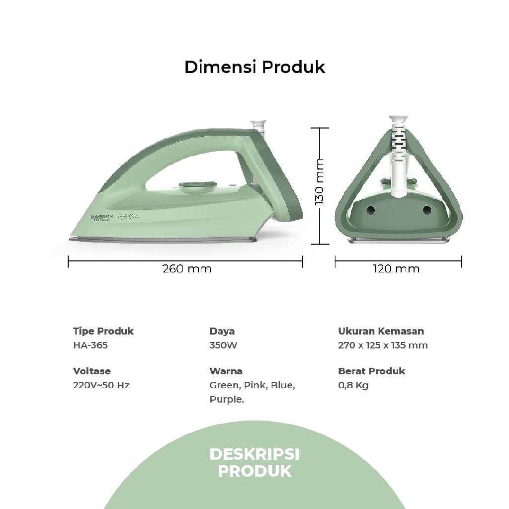 MASPION MSP SETRIKA / GOSOKAN LISTRIK HA-365 CERAMIC NON-STICK COATING SOLE PLATE HA365 / HA 365