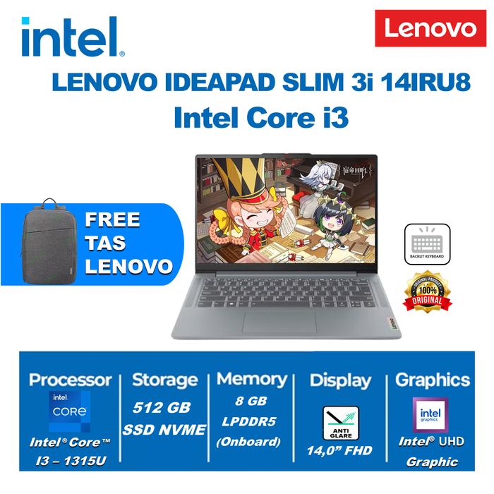 LAPTOP LENOVO IDEAPAD SLIM 3I 14IRU8 - I3 1315U 8GB 512GB SSD 14"FHD W11+OHS - NON BUNDLING, WINDOWS HOME