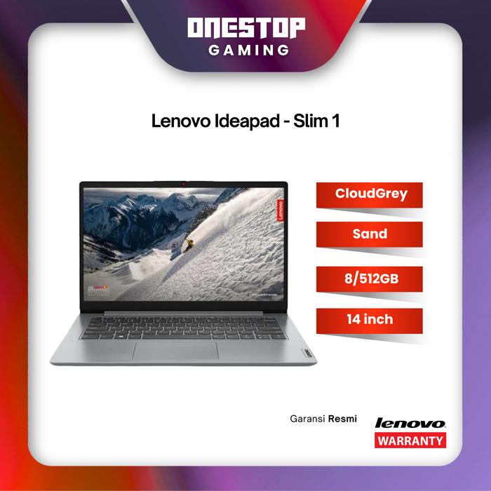 LAPTOP LENOVO IDEAPAD SLIM 1 CELERON N4020 RAM 8GB 256GB 512GB SSD W11 - CLOUDGREY 512GB, NON BUNDLE