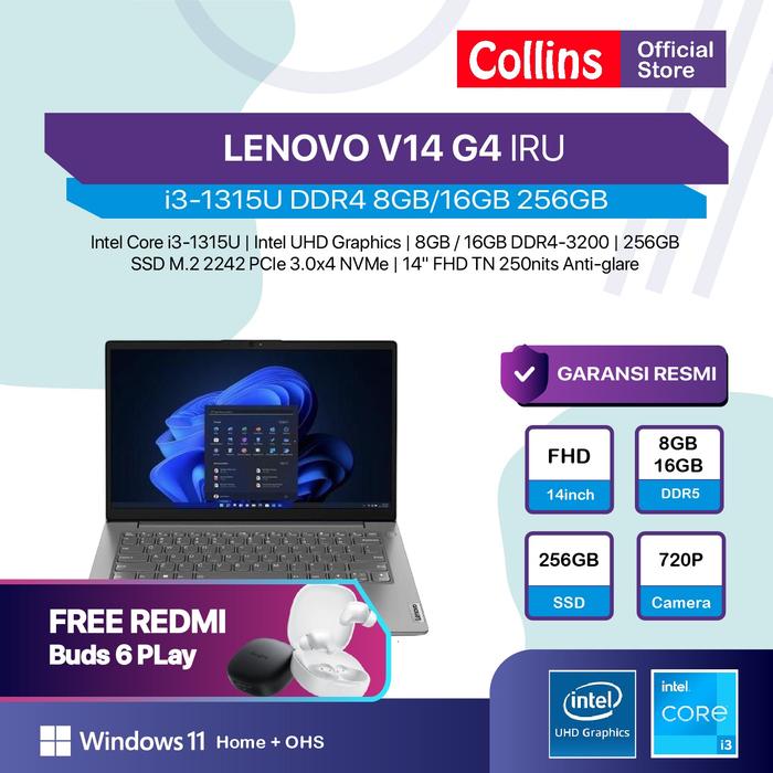LENOVO V14 G4 IRU I3-1315U DDR4 8GB/16GB SSD 256GB 14" FHD INTEL UHD W11 - RAM 8GB