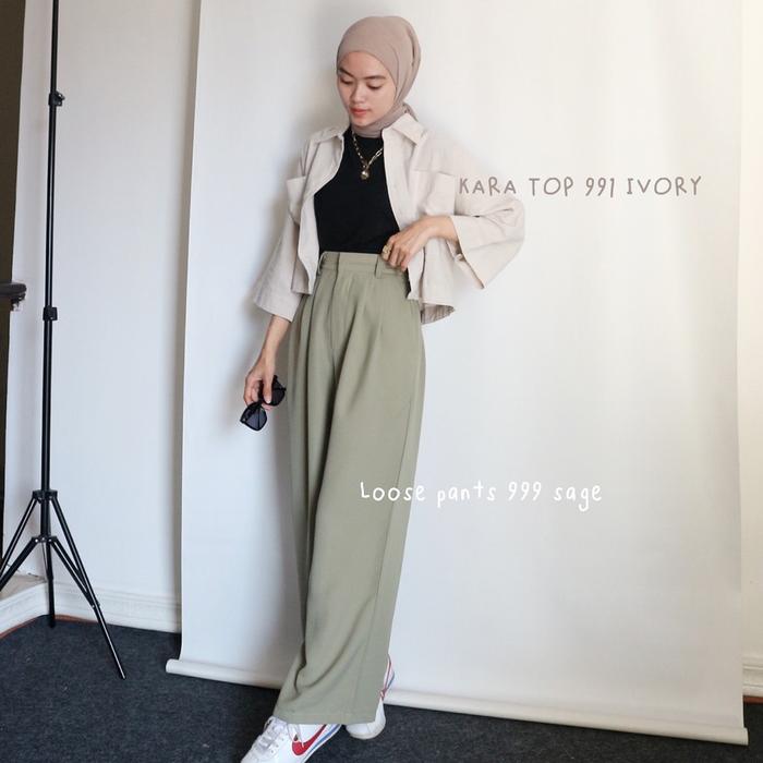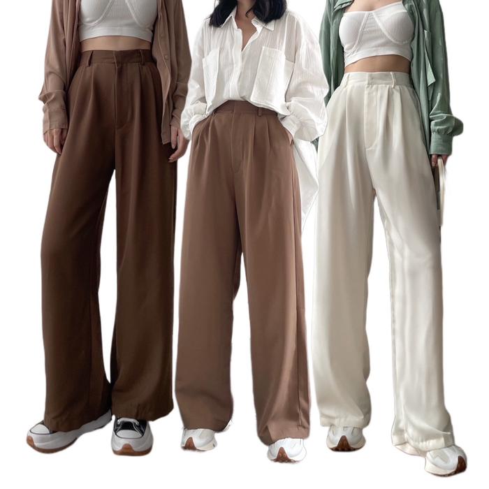 Asoka 999 Loose Pants Trousers Wanita - Celana Kulot Wanita Kekinian - Celana Kantor/ Polyester - Hitam, S-M (All Size)