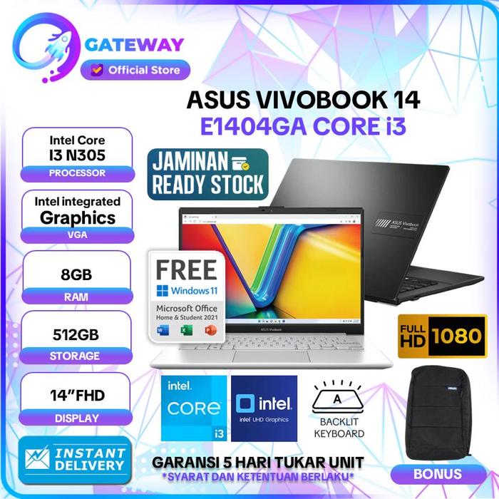 ASUS VIVOBOOK GO 14 E1404GA I3-N305 8GB 256/512GB SSD 14" FHD WIN11 OHS - NO BUNDLE, 256 GB