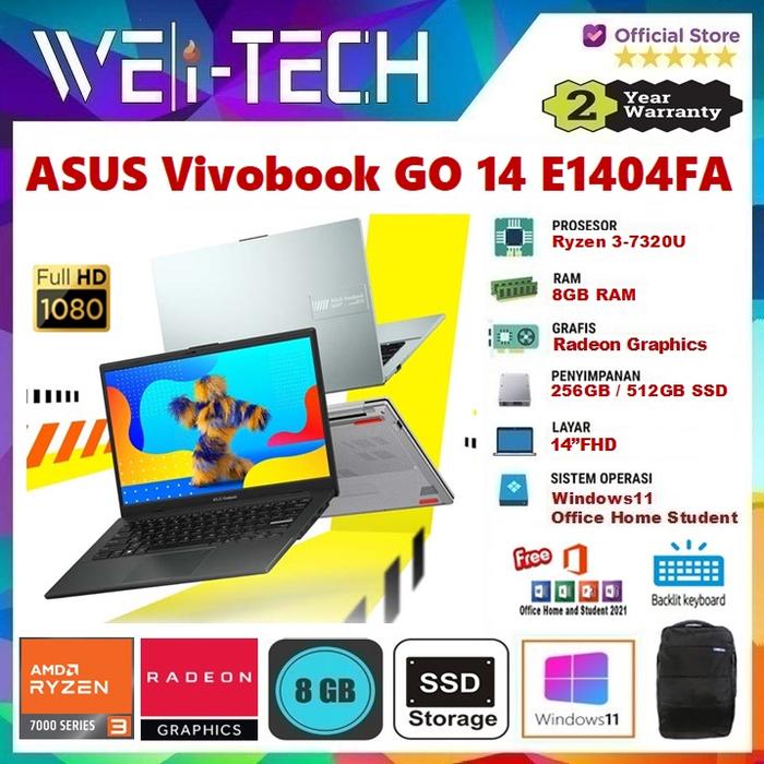 ASUS VIVOBOOK GO 14 E1404FA RYZEN 3-7320U 8GB 256/512GB 14"FHD W11 OHS - FHD321-BLAK-256, TANPA ANTIGORES