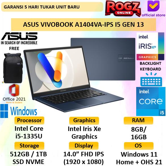 ASUS VIVOBOOK 14 A1404 CORE I5 GEN 13 16GB 1TB SSD W 11 + OHS 14.0 ASUS VIVOBOOK 14 A1404VA - NON PAKET, BLUE 8GB 512 SSD