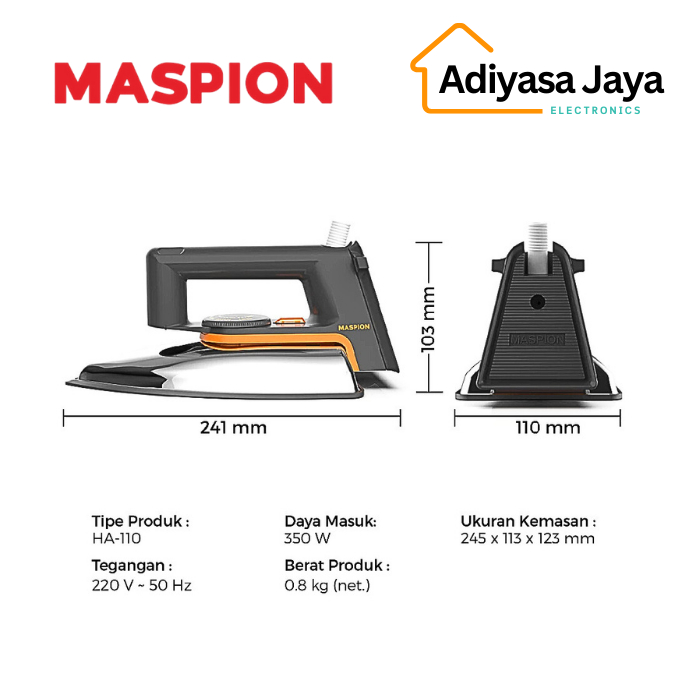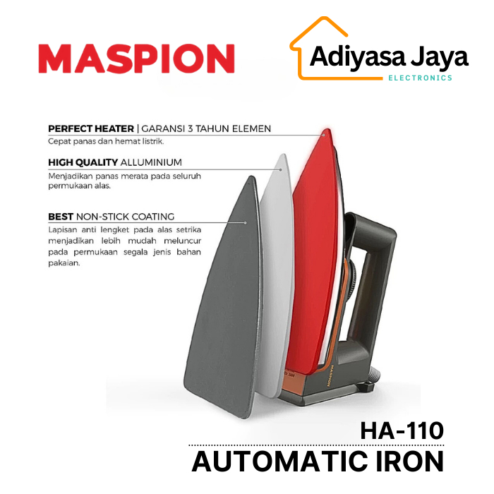 AUTOMATIC IRON HA-110 (MASPION) / SETRIKA LISTRIK / GOSOKAN BAJU / DRY IRON