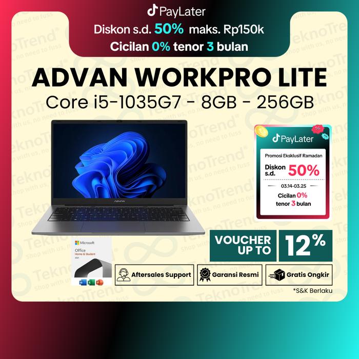 LAPTOP ADVAN WORKPRO CORE I5-1035G7 8GB 256GB SSD 14"FHD IPS WORK PRO - LITE I3 8/256, NON BUNDLING