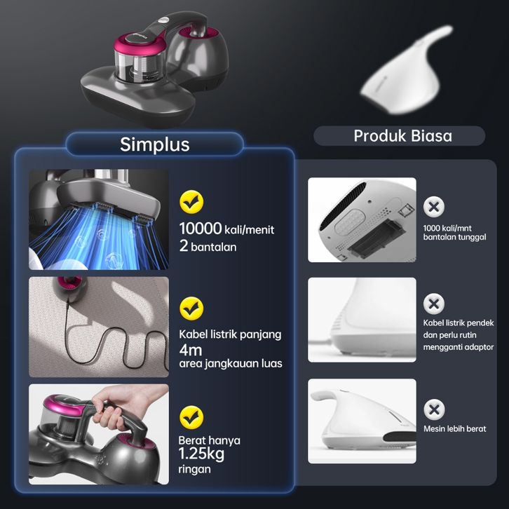 Simplus Vacuum Cleaner Penghilang Tungau Debu Kasur Sofa UV 10000x/menit Portable Alat Pembersih Rumah Tangga