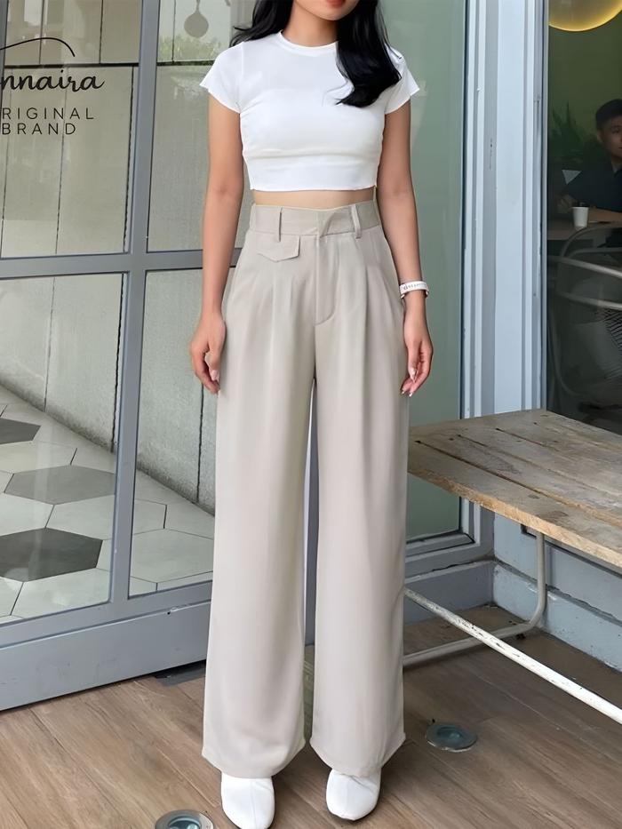 Buy 1 Get 1 Oro Pants Rib Knit Celana Panjang Wanita Anti Kusut Nyaman Dewasa Hitam Basic Variasi - Hitam Ivory, S/M (30