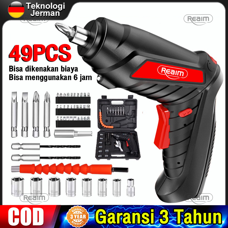 [Mall] REAIM CORDLESS SCREWDRIVER 4.2 V MESIN BOR BATERAI IMPACT CORDLESS DRILL 49 PCS SET SCREWDRIVER BATERAI BOR MINI