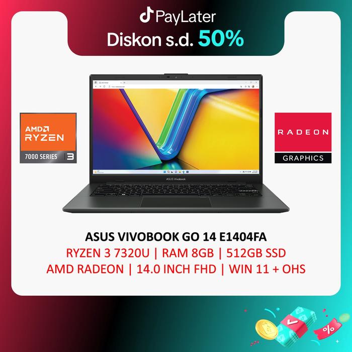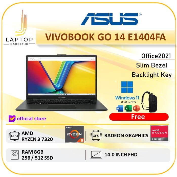 ASUS VIVOBOOK GO 14 E1404FA RYZEN 3 7320U 8GB 512 SSD RADEON 610M 14.0 LAPTOP - BLK 8GB/256SSD, UNIT SAJA