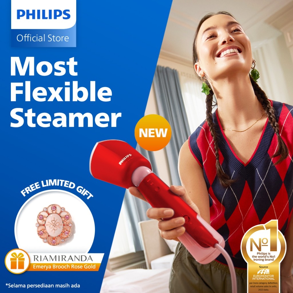 NEW PHILIPS HANDHELD STEAMER 5000 SERIES - STH5020/40 MERAH - SETRIKA UAP LISTRIK PALING FLEKSIBEL - PORTABEL