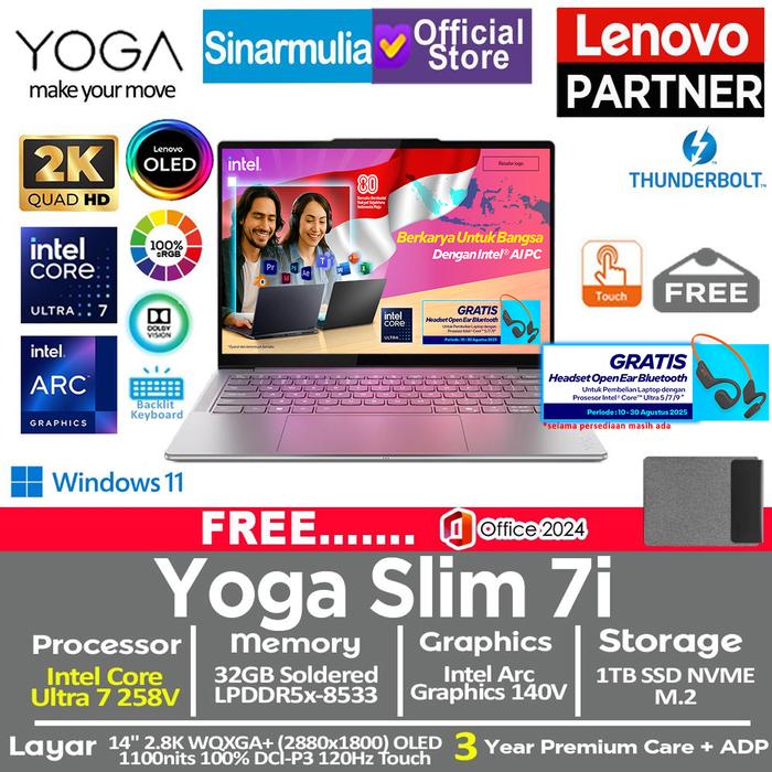 LENOVO YOGA SLIM 7I AURA EDITION ULTRA 7 258V 1TB SSD 32GB 2.8K WQXGA+ OLED 120HZ 100 PERSENSRGB COPILOT+ TOUCH WIN11+OHS - TANPA_ANTIGORES, WINDOWS 11 HOME