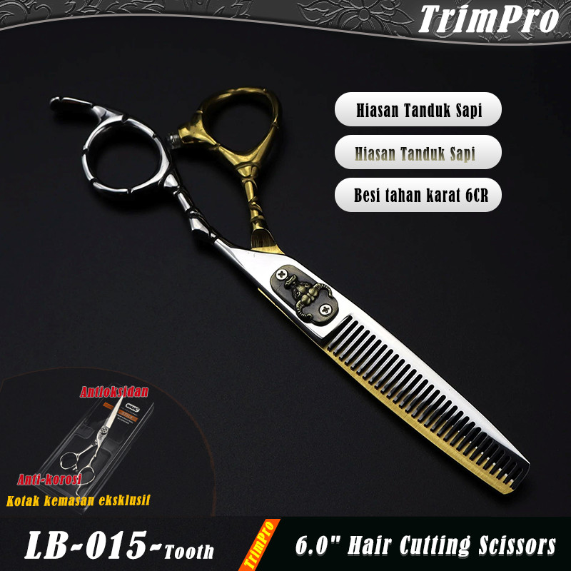 TrimPro LB-015-6.0 Gunting Barber Profesional Elegan - Warna Putih & 3m45 dengan Hiasan Tanduk, Support cicilan