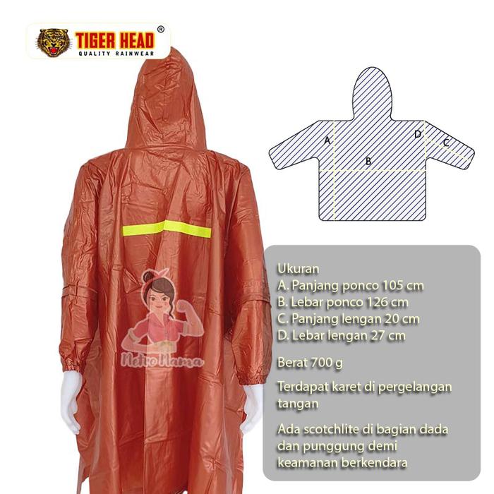 JAS HUJAN PONCO LENGAN TIGER HEAD BIG T0P 68209 ORI MANTEL TEBAL MURAH - BIRU PERAK