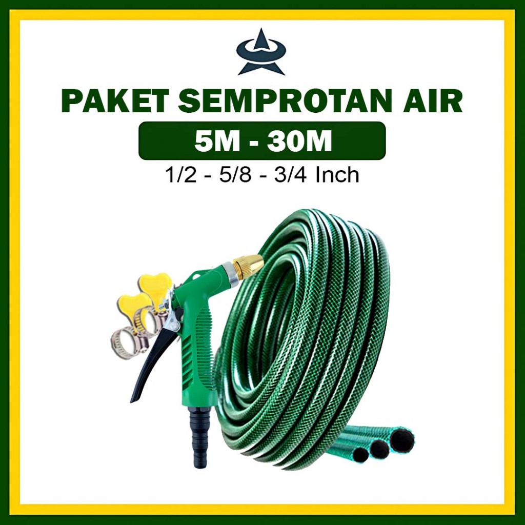 GEMUK Selang Air Cuci Motor 5 Sampai 30 Meter 1/2 5/8 3/4 Inch Sepaket Selang Anti Lumut Hijau Dengan Semprotan Nozzle S