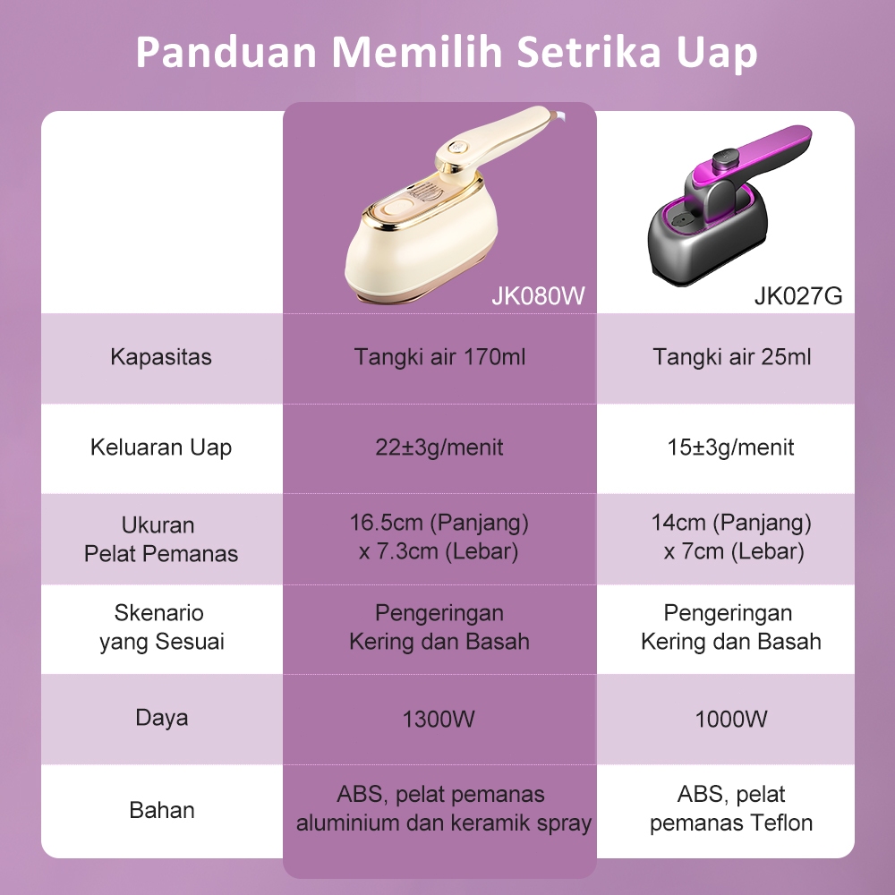 JVJH SETRIKA UAP 2 IN 1 SETRIKA PORTABLE BESI HANDHELD SETRIKA MINI TRAVEL FOLDABLE DRY/WET IRONING
