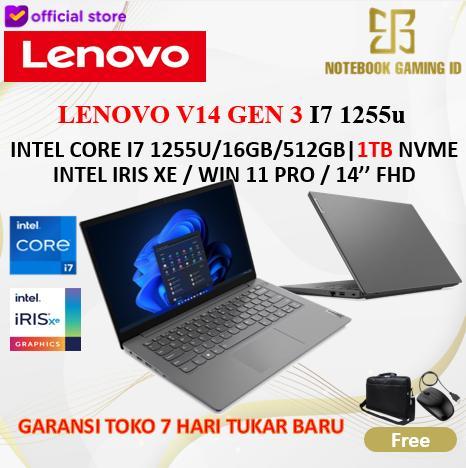 LAPTOP LENOVO V14 G3 CORE I7 1255 16GB 1TB SSD W11 PRO 14" FHD - TANPA ANTIGORES, 16-512 W11PRE