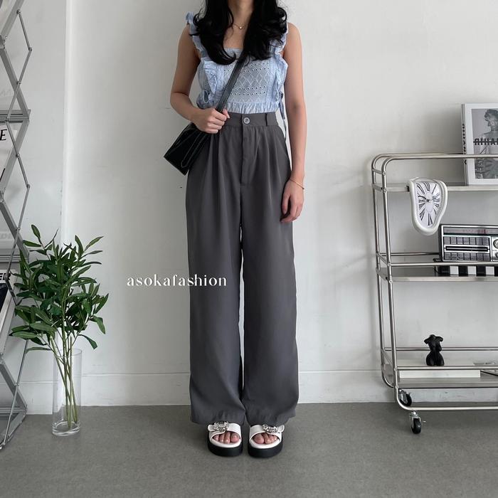 Asoka Haelyn - Loose Pants Petite Size 668 - Kulot Highwaist Anti Kusut - Trouser Basic Wanita Celana Panjang Casual Fo