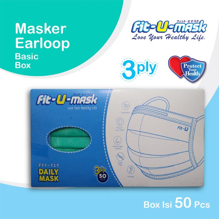FIT-U MASK BASIC EARLOOP 3 PLY BOX ISI 50PCS - HIJAU