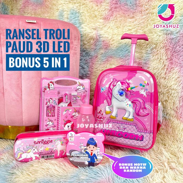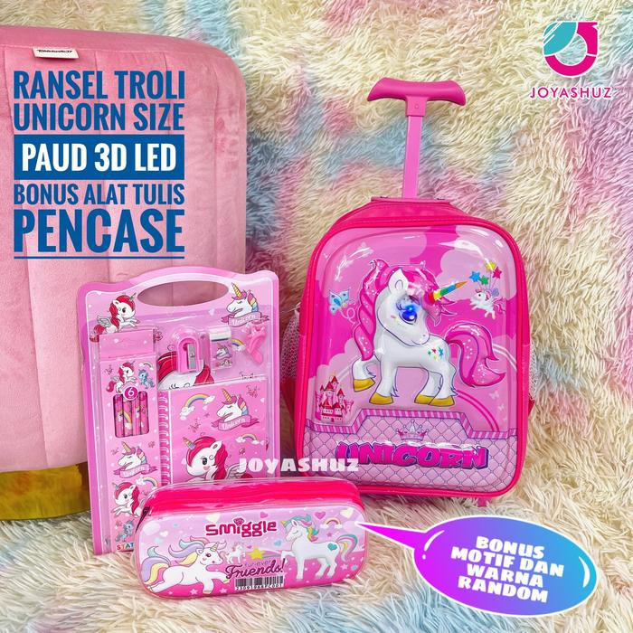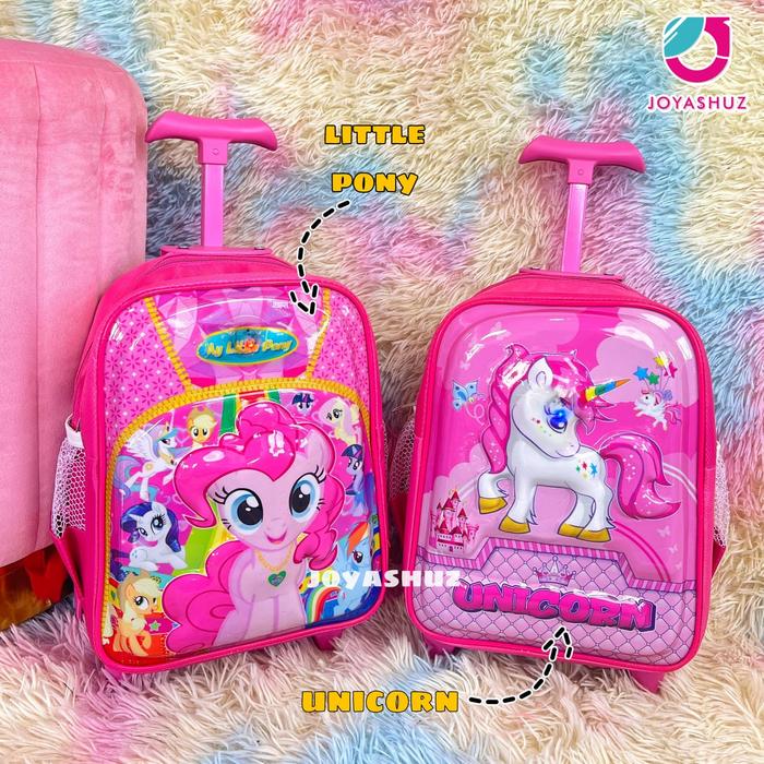 Tas Sekolah Troli Anak Perempuan Sd Tk Paud Motif Karakter Unicorn - Tas Sekolah Anak Tk Little Pony - Tas Roda Dorong A