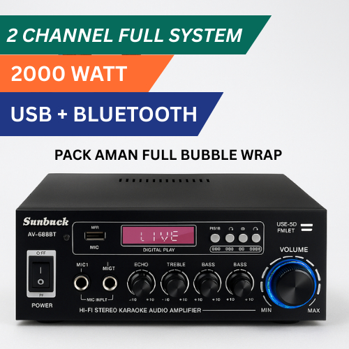Ampli Karaoke Masjid Full Equalizer Bluetooth - Amplifier Stereo Treble Bass Booster 2000 Watt Full Power