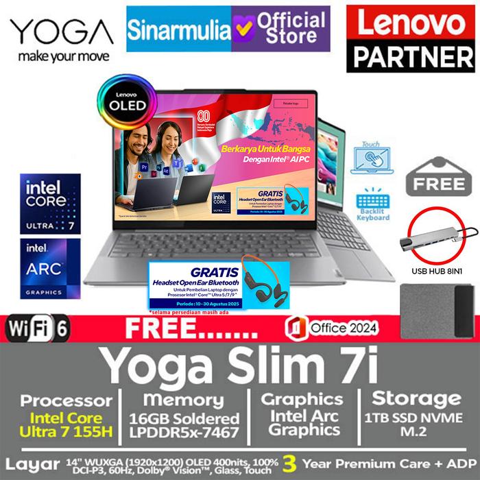 LENOVO YOGA SLIM 7I ULTRA 7 155H 1TB SSD 16GB OLED WUXGA 100 PERSENSRGB TOUCH WIN11+OHS - TANPA_ANTIGORES, WINDOWS 11 HOME