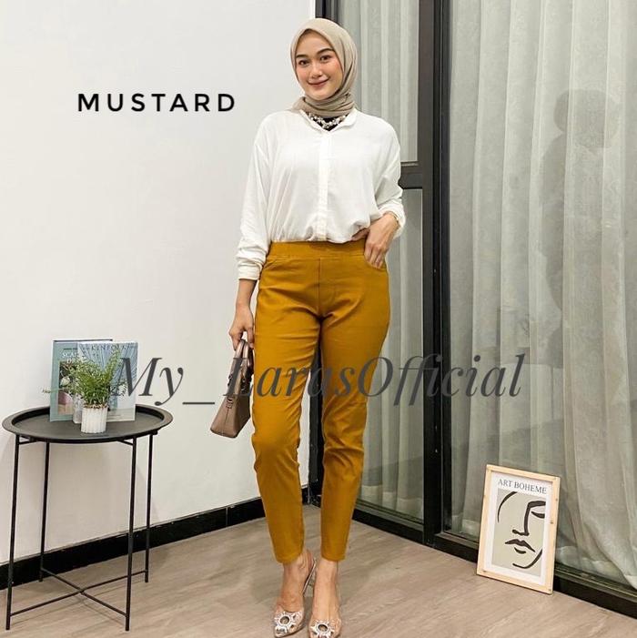 Celana Elizabeth Soft Otomen Elastis Stretch - Navy, Super Jumbo