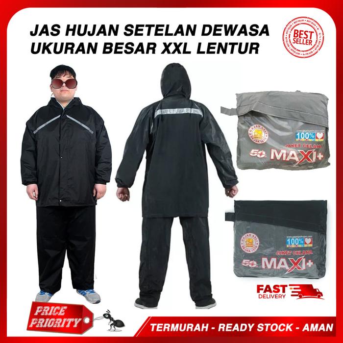 JAS HUJAN SETELAN JAKET CELANA ORANG GEMUK GENDUT JUMBO UK XL MAXI+ - HITAM