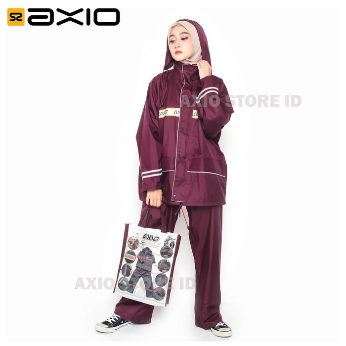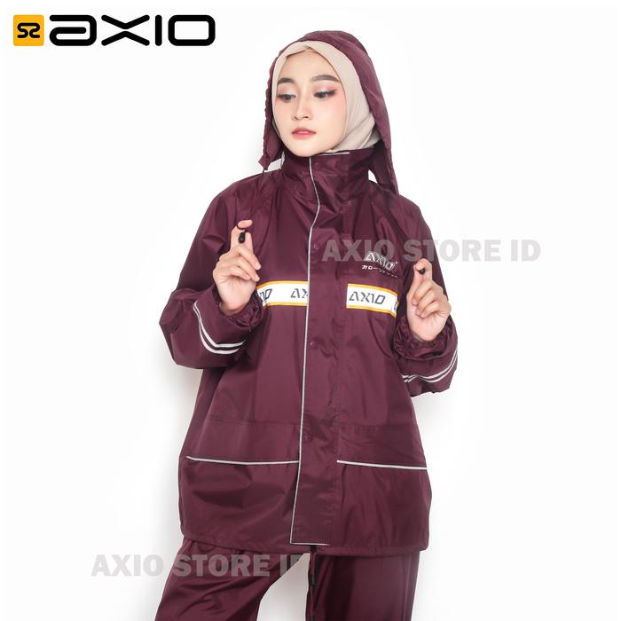 JAS HUJAN WANITA AXIO MERAH MAROON ORIGINAL BAHAN TEBAL ANTI BOCOR WATERPROOF - M