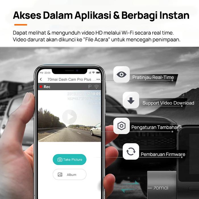 70MAI SMART DASH CAM PRO PLUS A500S SET FRONT HD 1944P & REAR 1080P BUILT-IN GPS 24H PARKING SURVEILANCE CAR CAMERA KAMERA DEPAN DAN BELAKANG KAMERA DASBOR MOBIL 2023 - FRONT+REAR, CAMERA ONLY