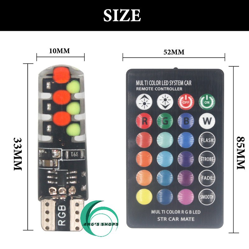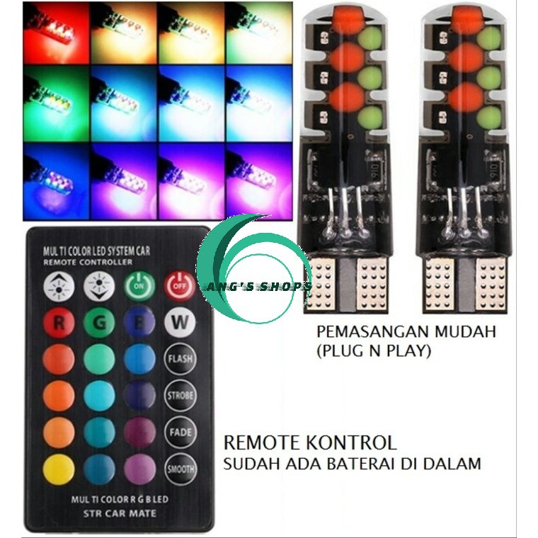 Lampu LED Mobil Motor T10 RGB Jelly ISI 2pcs Remote 12V Senja Sen Sein Kota Termurah
