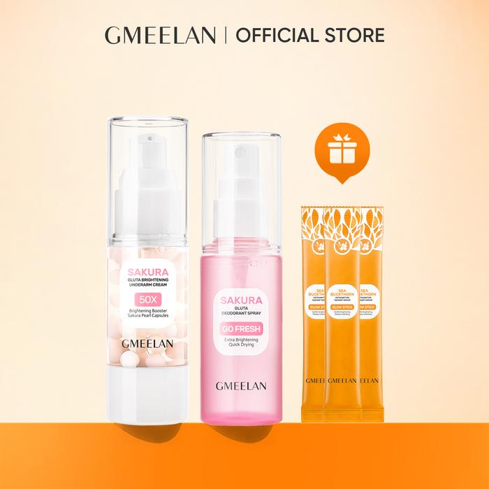 Gmeelan 2Pcs Kits Krim Pemutih Ketiak Sakura 30G+Sakura Gluta Deodorant Spray 50Ml