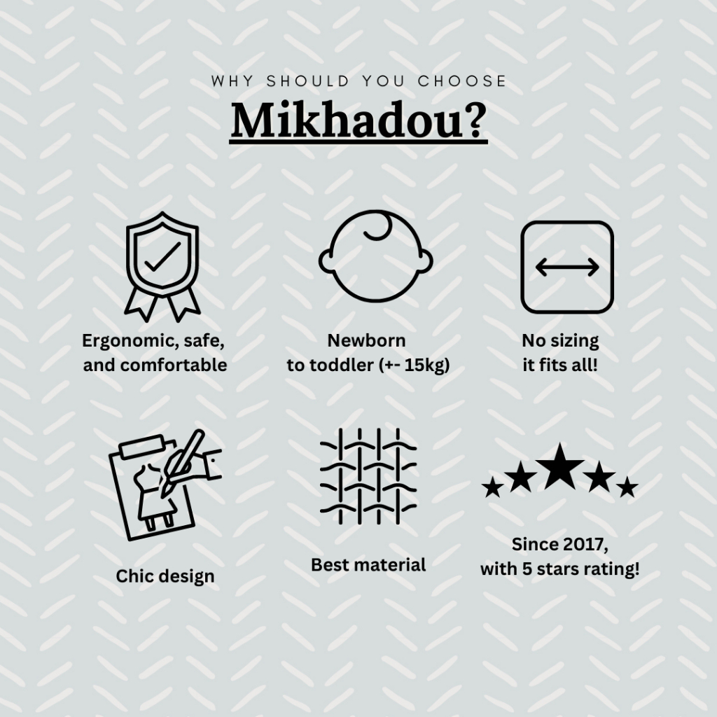 Mikhadou Stretchy Wrap - Gendongan Bayi M Shape Black - Baby Carrier