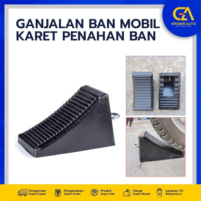 PENAHAN / GANJALAN / GANJEL PARKIR BAN MOBIL KARET RUBBER WHEEL CHOCK - DENGAN BESI