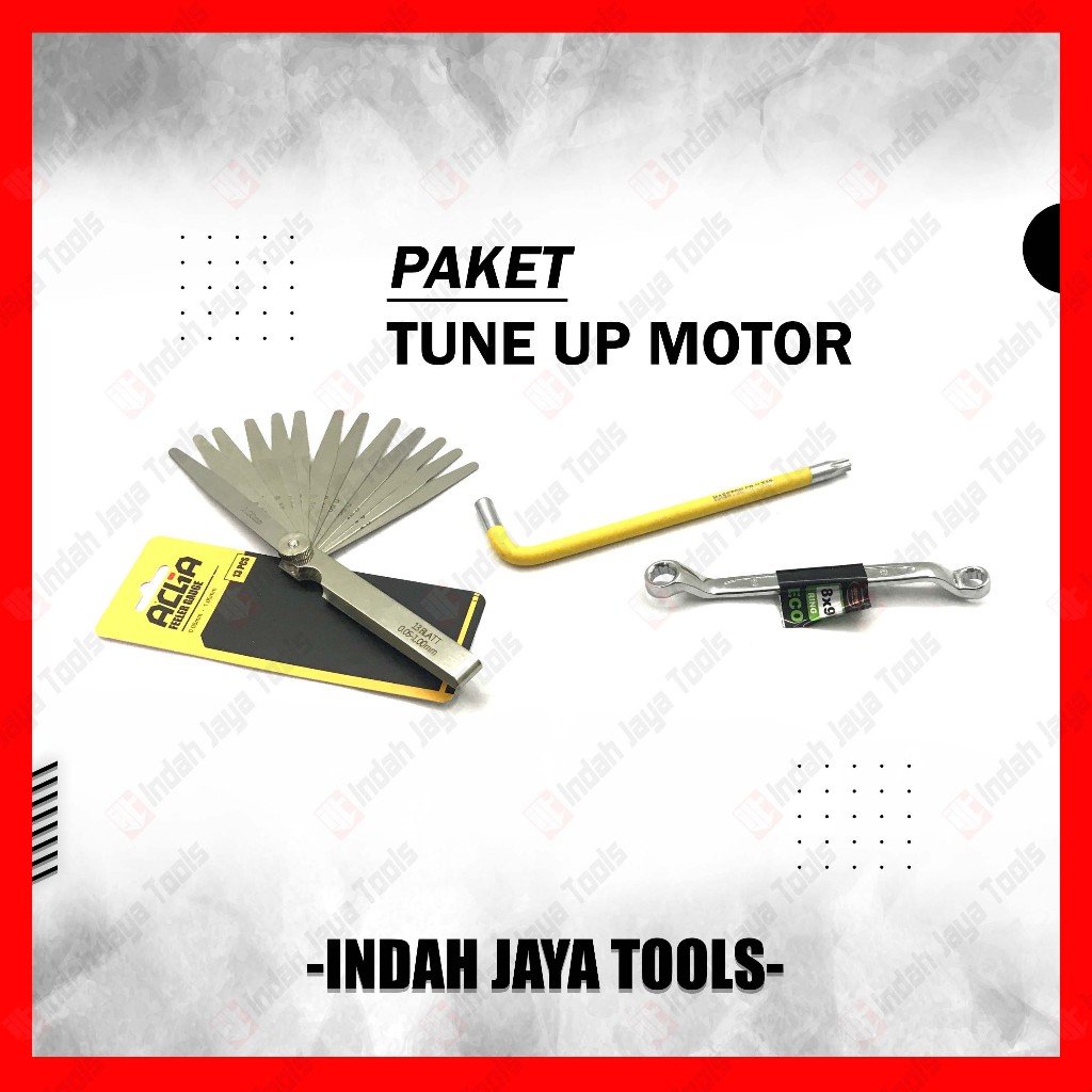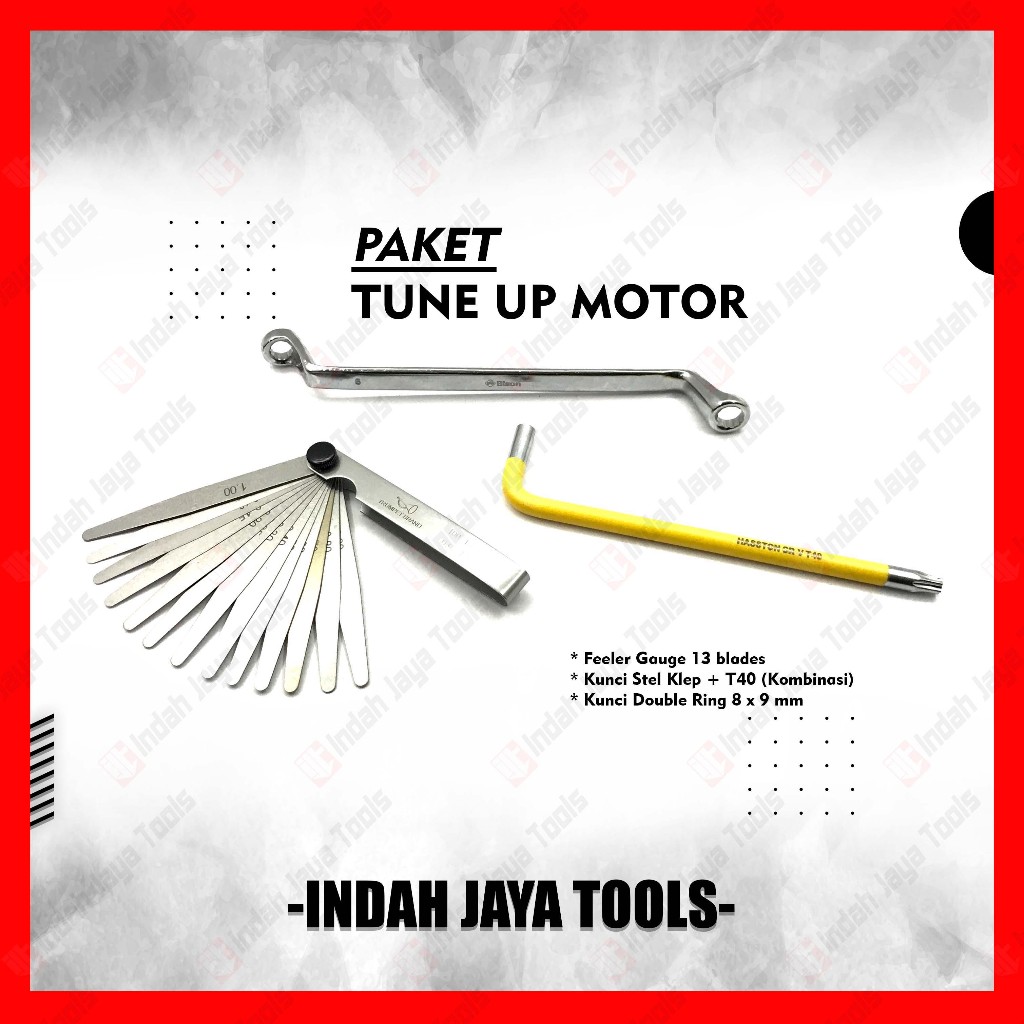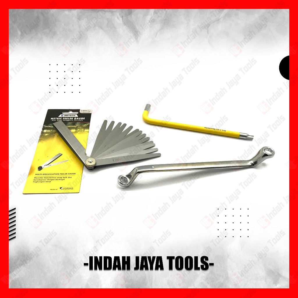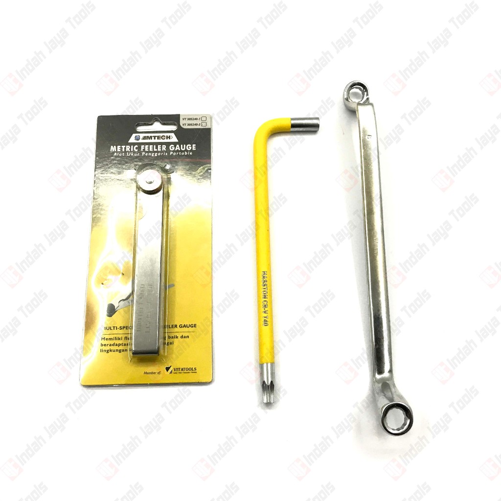 PAKET TUNE UP MOTOR Set 3 Pcs - Stel Klep Buka Caliper Rem Honda 4in1 Feeler Gauge Kunci Ring 8 x 9 mm