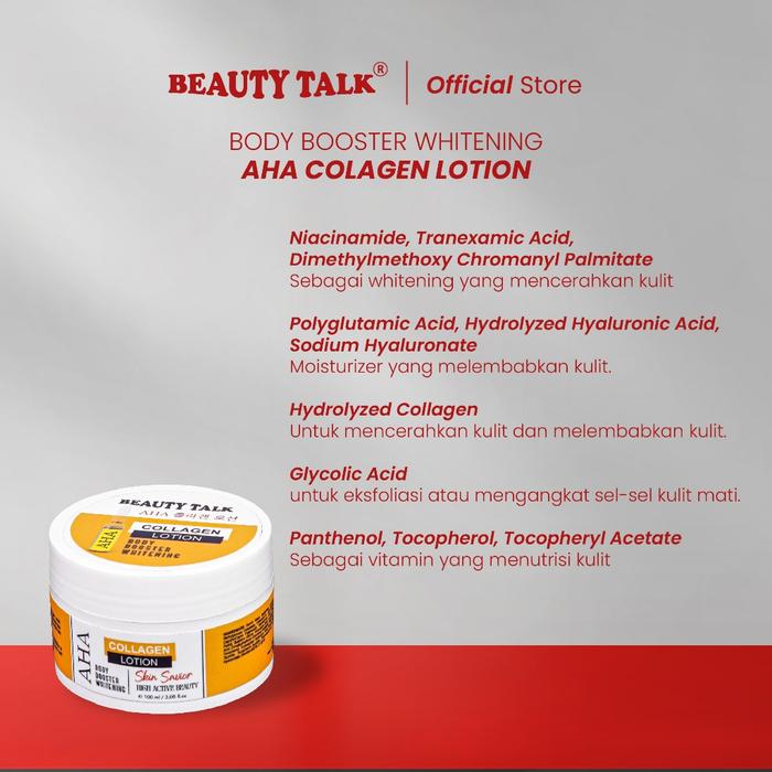 [Bundling Hemat- 2 Pcs] Beauty Talk Aha Collagen Lotion 100 Ml - Lotion Pencerah Kulit, Body Booster & Whitening Yang Me