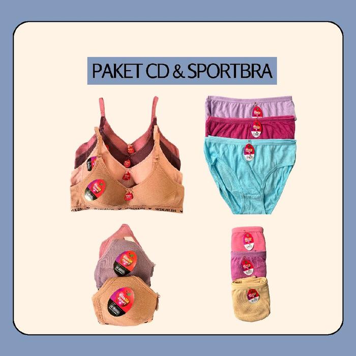 Paket Murah Meriah Winalin / 1 Lusin Cd+1 Lusin Sport Bra / Paket Celana Dalam Winalin + Sport Bra Winalin Wanita Bh Bus