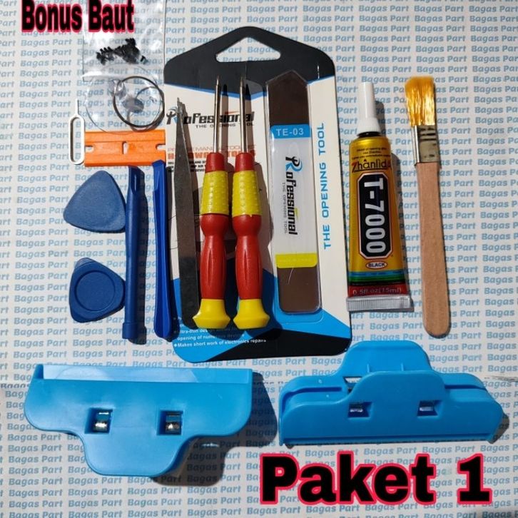 alat servis hp lengkap murah Obeng 10in 1 + Lem T 7000 15ml + Congel Lcd Touchscreen TE03 + kuas lembut + Pencepit Leb