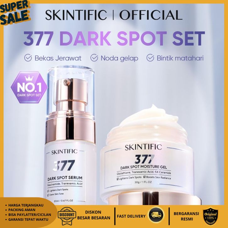 SKINTIFIC 377 Dark Spot 2pcs Set Moisturizerl 30g Serum 20ml Menyamarkan Noda Hitam Niacinamide Brightening