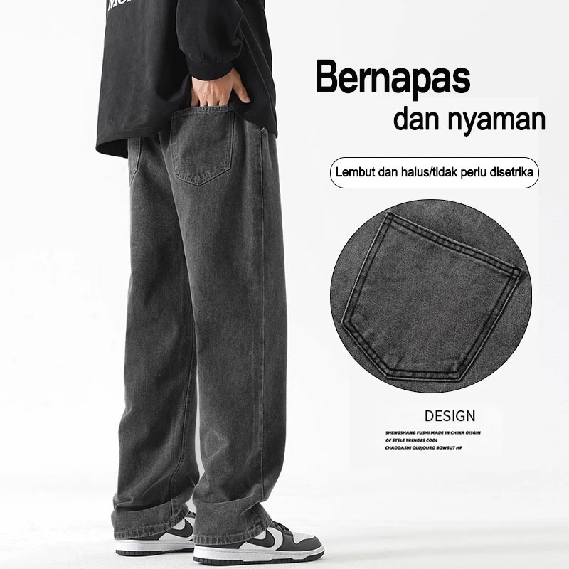 Celana jeans pria korean style celana panjang Longgar Hitam Lurus loose jeans celana panjang cowok highwaist laki laki dewasa Celana kulot pria celana denim baggy pants cutbray boyfriend jeans 2025