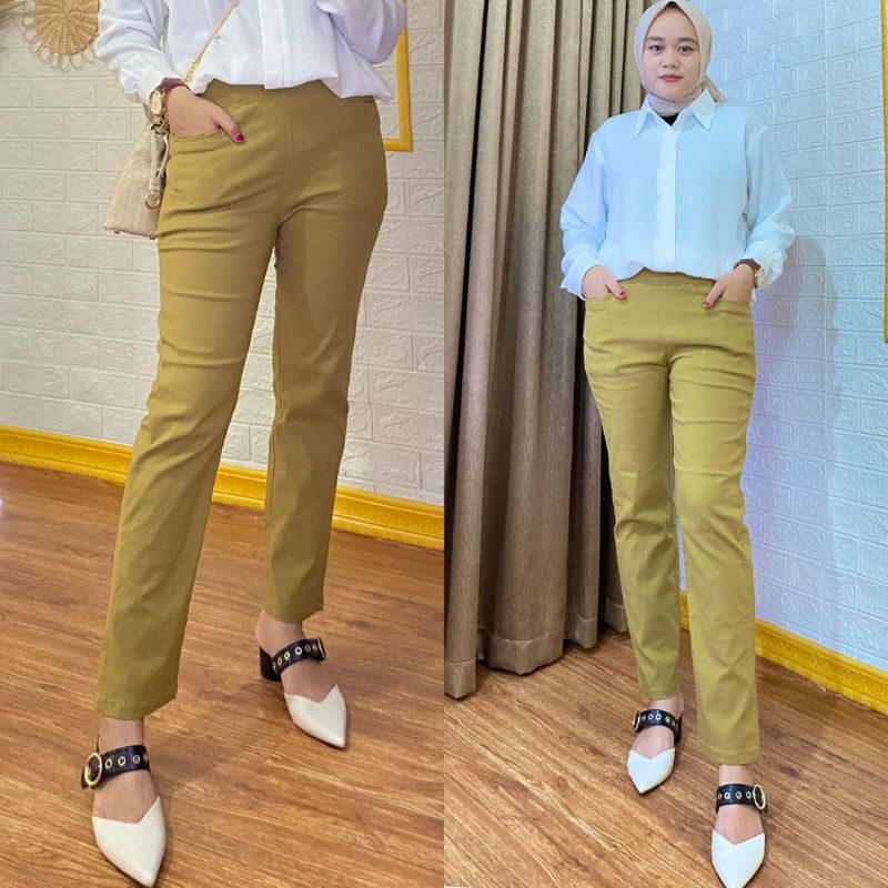 Office Pants Bahan Soft Jeans Strecht Melar Premium Celana Kerja Kantor Wanita Nyaman Panjang